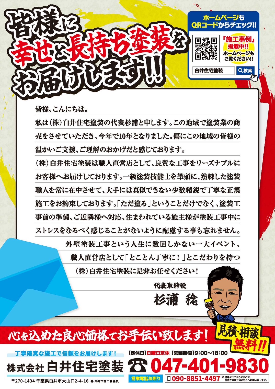 「このチラシを見た」でお見積りのお値段から10パーセント引きさせていただきます。