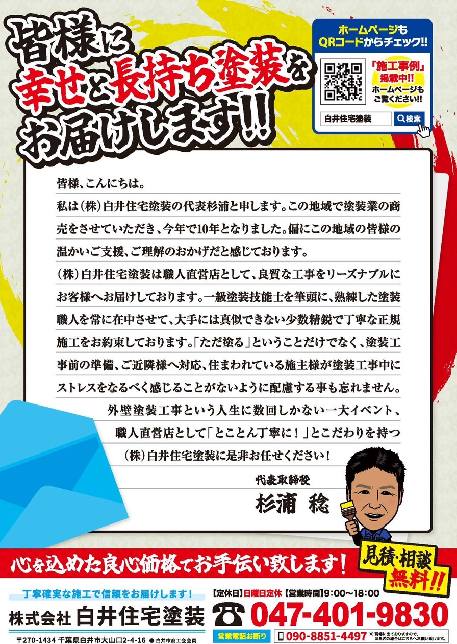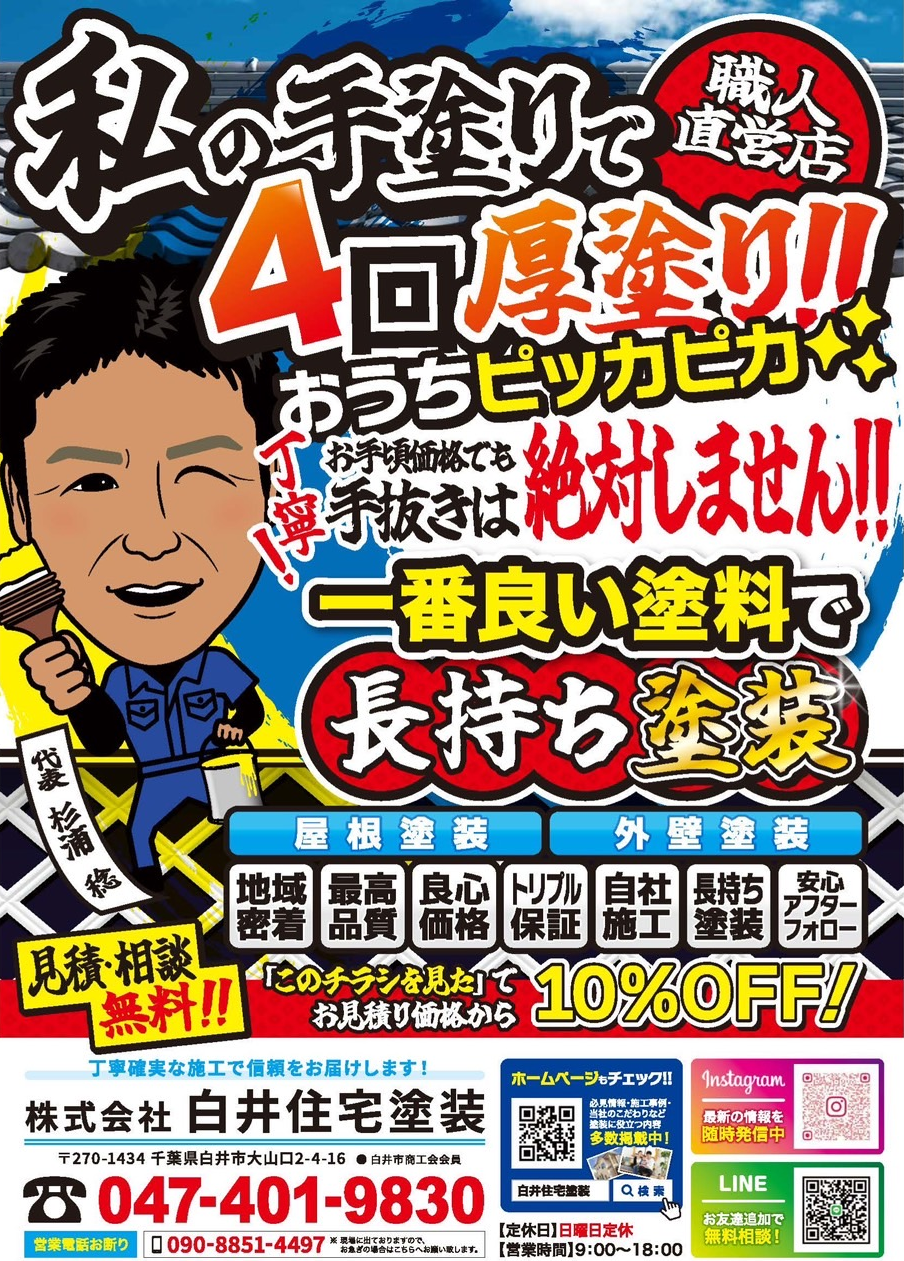 このチラシをご覧頂けましたらお見積り価格から10パーセントお値引きさせていただきます!